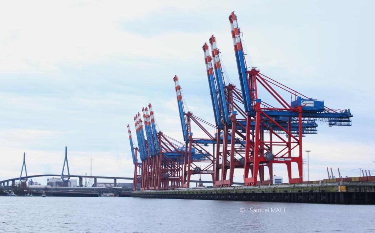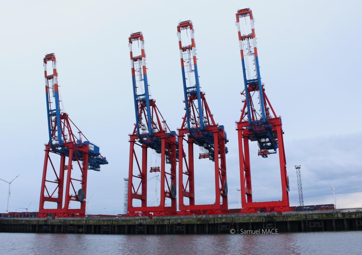 Hambourg est située au confluent de l’Alster, de la Bille et de l’Elbe, fleuve qui reste navigable même pour les porte-conteneurs de gros tonnage. Le port est le 3e européen derrière Rotterdam et Anvers. Après la réunification allemande en 1990, Hambourg entre dans une phase de transformation urbaine et économique. Le projet HafenCity débute en 2001 sur l’ancien espace portuaire, destiné à devenir le plus grand quartier urbain d’Europe avec logements, bureaux et équipements culturels, incluant l’Elbphilharmonie inaugurée en 2017 (une merveille architecturale à contempler de près comme de loin). Une visite en bateau permet de remonter l’Elbe et découvrir les installations portuaires, dont les multiples cargos, grues, ponts, etc. forment un décor de film noir. Il faut se laisser porter par le clapot et admirer ce paysage industriel. Mais glisser également un oeil sur les quais de la rive droite. Les quartiers de Hambourg proches des jetées, les bâtiments typiques ou modernes, les villages alentours créent un pendant et un véritable contraste avec le quartier du port.